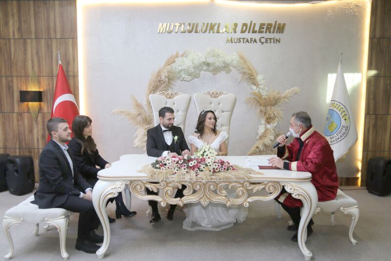 Kapaklı Belediyesi Evlendirme Memurluğunda 2021 yılında 41’i yabancı olmak üzere 823 çift kıyılan nikâhla hayatlarını birleştirdi. Zaman zaman nikah törenlerine katılarak çiftlerin nikahlarını da kıyan Kapaklı Belediye Başkanı Mustafa Çetin, “Tüm çiftlerimize mutlu ve huzurlu bir evlilik hayatı diliyorum.” dedi.