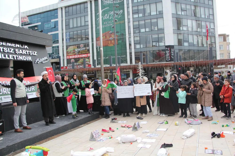 İHH (İnsani Yardım Vakfı) Çerkezköy Temsilciliği tarafından Çerkezköy’de düzenlenen etkinlikte bir kez daha Filistin’e destek verilirken, İsrail’e lanet edildi. İHH, 23 Aralık’ı Dünya Şehit Çocukları Günü ilan etti.