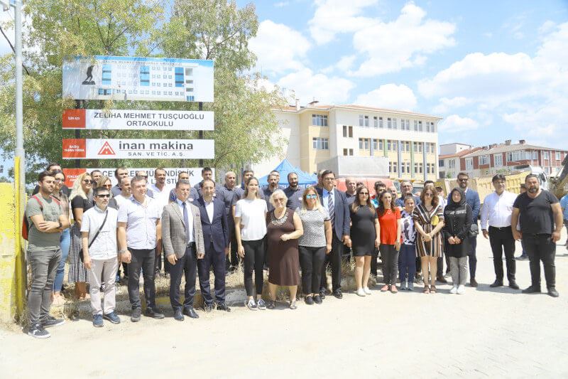 Temel atma törenine Kapaklı Kaymakamı Bayram Sağır, Kapaklı Belediye Başkanı Mustafa Çetin, İlçe Milli Eğitim Müdürü İrfan Danışmaz, siyasi parti temsilcileri, MTB İnan Makina Sanayi ve Ticaret A.Ş. Yönetim Kurulu Başkanı Tijen Tusçuoğlu Alkan, Yönetim Kurulu Başkan Yardımcısı Dinçer Alkan, rahmetli Mehmet Tusçuoğlu’nun eşi Zeliha Tusçuoğlu ve torunu Selin Alkan ile fabrika çalışanları katıldı.