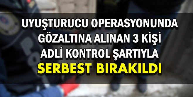 Çorlu İlçe Emniyet Müdürlüğü Narkotik Suçlarla Mücadele Büro Amirliği ekiplerince ilçe girişindeki uygulama noktasında gözaltına alınan İ.E, M.B. ve T.O`nun emniyetteki işlemleri tamamlandı. Adliyeye sevk edilen şüpheliler adli kontrol şartıyla serbest bırakıldı.