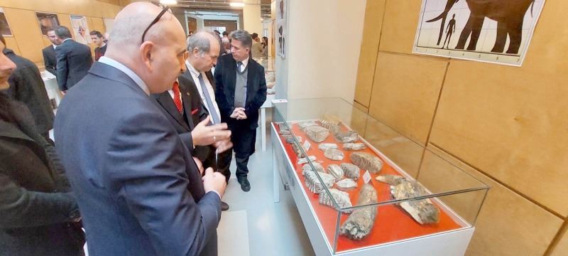 Doç. Dr. Özşahin açıklamasının devamında, “Mamut fosilleri ilk kez burada sergileniyor. Bu fosiller daha önce Edirne Müzesi’nde çok kısmi de olsa sergilenmiş ama oradaki müze arkeoloji müzesi olduğundan dolayı bunların sergilenmesine uygun değil. Alan farklı olduğundan dolayı çok anlaşılamamış. Biz coğrafyacılar olarak bu işle ilgilendiğimizden dolayı bunları aldık, kendi arasında tasnif ettik kemikleri. Omurgaları özelliklerine göre ayırt ettik, sınıflandırdık. Ondan sonra da sergiye hazır hale getirdik izleyicilere sunduk” diye konuştu.