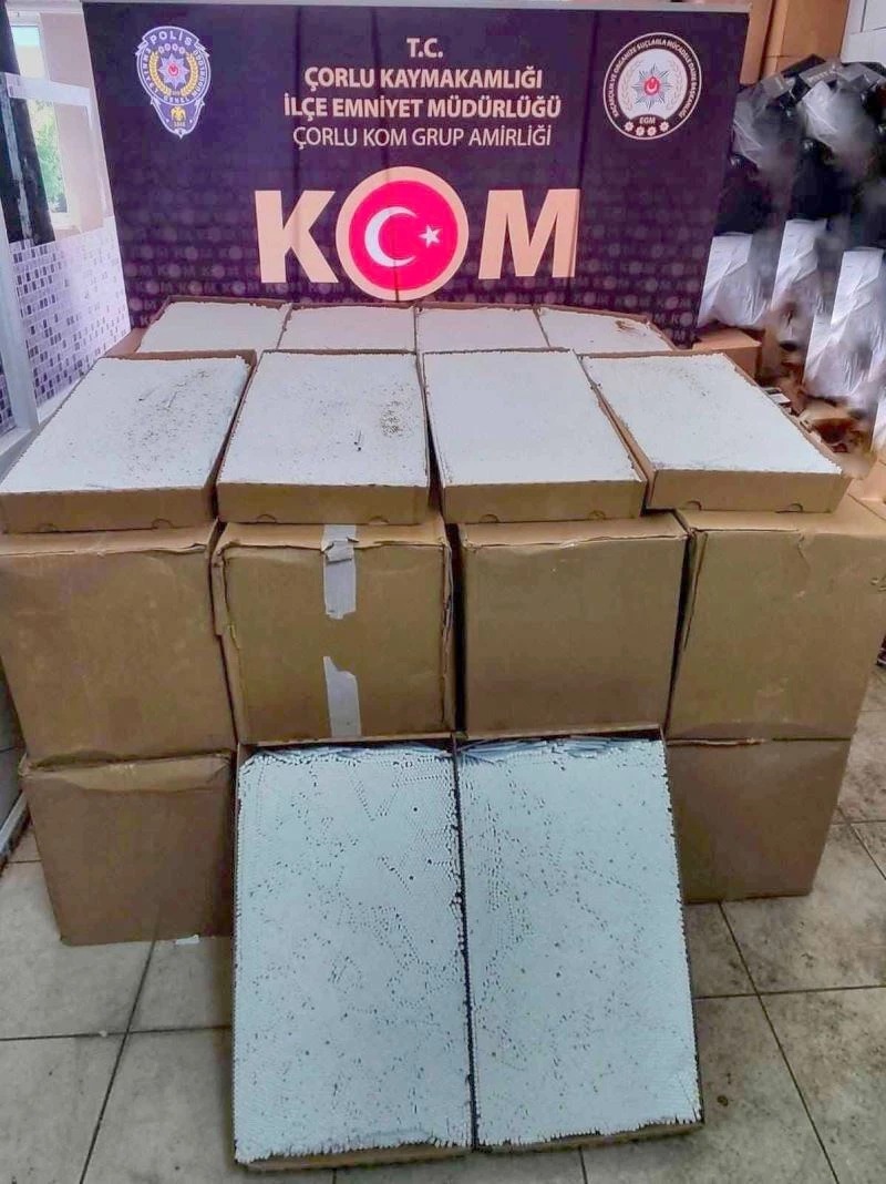 Çorlu’da polis ekipleri tarafından 475 bin adet makaron ele geçirildi