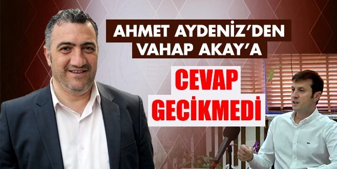 Dünkü basın toplantısında MHP İlçe Başkanı Ahmet Aydeniz`e göndermede bulunan Çerkezköy Belediye Başkanı Vahap Akay`a çok sert açıklama geldi. Aydeniz yazılı yaptığı açıklamasında Akay`a verdi veriştirdi!
