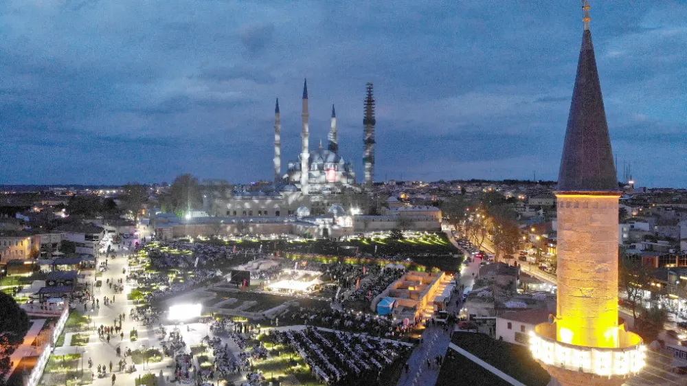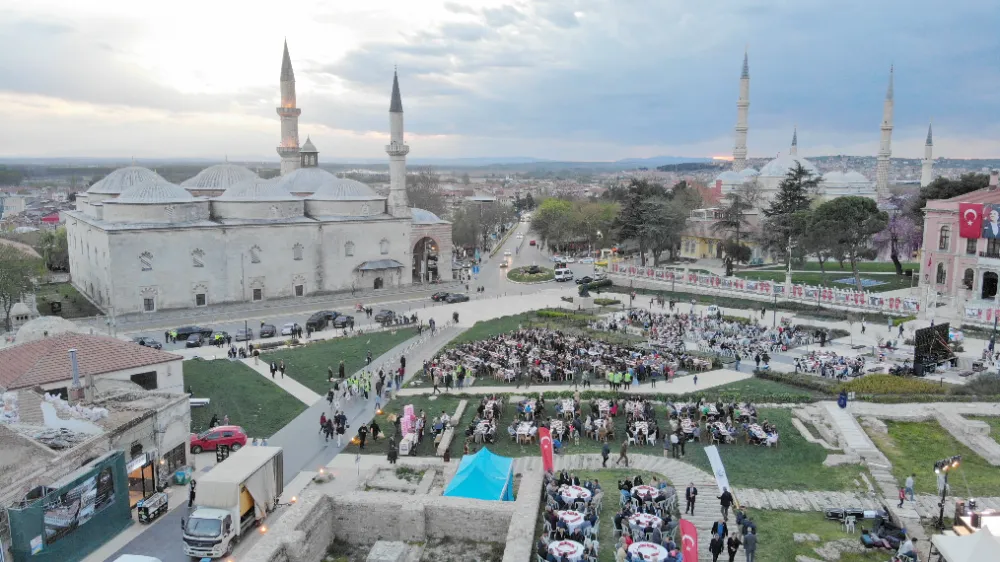 Edirne Valiliğinin katkılarıyla Selimiye Camii meydanında düzenlenen iftar programına Diyanet İşleri Başkanı Ali Erbaş’ın da katılımıyla 5 bin kişi iftarda bir araya geldi.