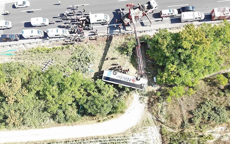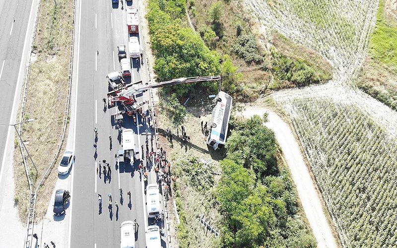 Ayrıca kaza bölgesinde kaldırma çalışmaları da başlatıldı. Metrelerce şarampole yuvarlanan otobüsü kaldırmak için bölgeye iş makinesi çağrıldı. Kaza bölgesine devletin tüm imkanları seferber edilmiş durumda. Bölgeye çağrılan iş makineleri otobüsü kaldırdı. Kaza bölgesi ve otobüsü kaldırma çalışmaları havadan görüntülendi.