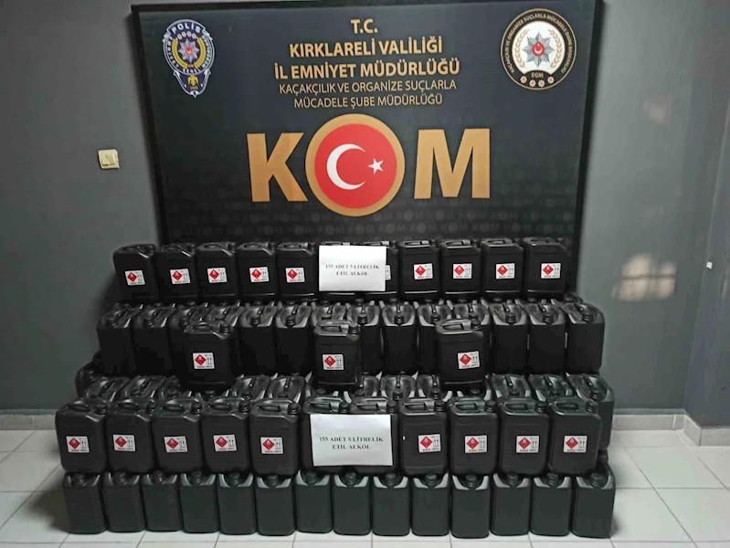 Kırklareli’nde polis ekiplerince düzenlenen operasyonda, 775 litre etil alkol ele geçirildi.