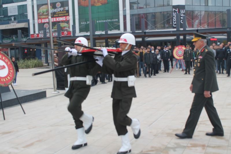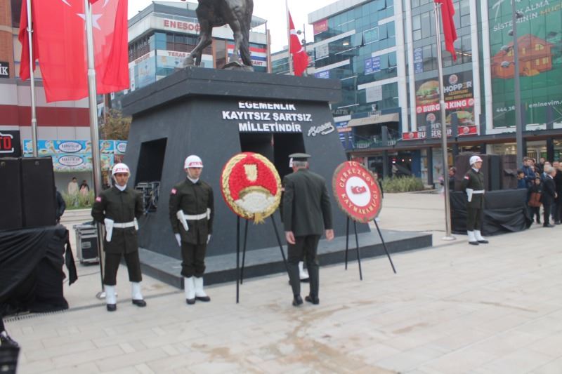 Türkiye Cumhuriyeti’nin kurucusu Başkomutan Mustafa Kemal Atatürk’ün aramızdan ayrılışının 84’üncü yıl dönümü dolayısıyla düzenlenen anma programı Çerkezköy Cumhuriyet Meydanı’nda bulunan Atatürk Anıtı’na çelenklerin sunulması, 2 dakikalık saygı duruşu ve İstiklal Marşımızın okunması ile başladı.