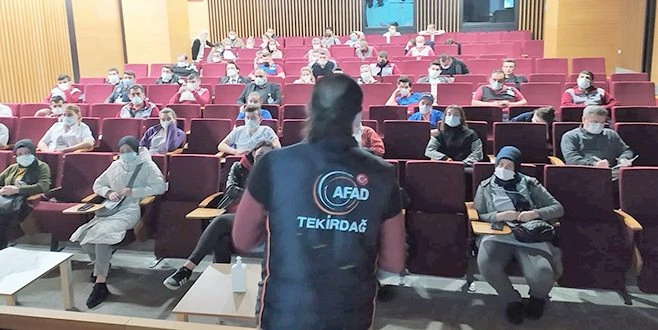 2021 yılı "Türkiye Afet Eğitim Yılı" çerçevesinde Tekirdağ İl Afet ve Acil Durum (AFAD) Müdürlüğü eğitmenlerince, Tekirdağ İsmail Fehmi Cumalıoğlu Şehir Hastanesinde afet bilinci eğitimi verildi. 5 oturum şeklinde planlan eğitimin ilk 2 gününde katılımcılara, ilk 72 saat, afet türleri, afetin etkileri, yaşadığımız mekânlardaki risklerin azaltılması ve afet sırasında ve sonrasında doğru davranış şekilleri konularında bilgilendirme yapıldı.