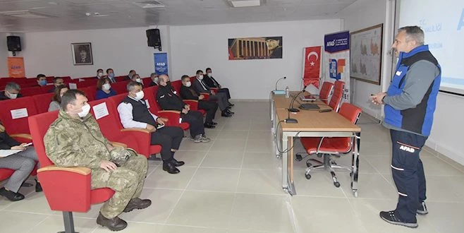 Korona virüs tedbirleri kapsamında gerçekleşen eğitimde katılımcılara; ilk 72 saat, afet türleri, afetin etkileri, yaşadığımız mekanlardaki risklerin azaltılması ve afet sırasında ve sonrasında doğru davranış şekilleri konularında bilgilendirme yapıldı.
