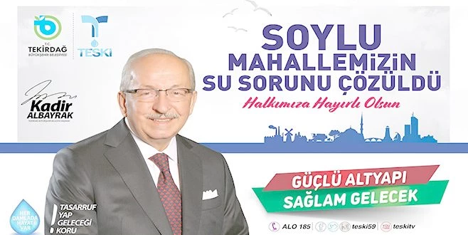 Konu hakkında açıklama yapan Tekirdağ Büyükşehir Belediye Başkanı Kadir Albayrak, "Büyükşehir Belediyesi ve bağlı kuruluşumuz TESKİ bünyesinde yürüttüğümüz çalışmalar sonucunda Tekirdağ ili genelinde altyapı sorununu büyük ölçüde çözdük. Hayata geçirmiş olduğumuz bu proje de Soylu Mahallemizin su ihtiyacını uzun yıllar boyunca karşılayacaktır. Projenin, Soylu Mahallemiz ve civar mahallelerine hayırlı olmasını diliyorum" dedi.