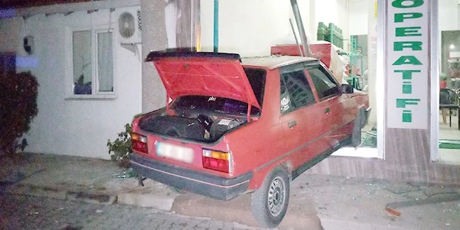 Kaza, gece yarısı Hacıevhat Mahallesi Kır Sokak?ta meydana geldi. Edinilen bilgiye göre, Doğuş Sokak?ta seyir halindeki bir otomobil, Kır Sokak?a saptığı sırada sürücüsünün direksiyon hakimiyetini kaybetmesi sonucu tarım ürünü ve aletlerinin satıldığı kooperatif binasına girdi.