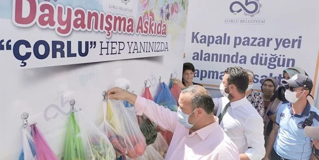Yaşanan pandemi dönemi nedeniyle ekonomik açıdan zorluk yaşayan vatandaşlara bir nebze de olsa katkı sunmak ve Çorlu halkı arasında dayanışma, birlik ve beraberlik duygusunu artırmak adına yeni bir kampanyaya imza atan Çorlu Belediyesi, askıda dayanışma kampanyası başlattı.