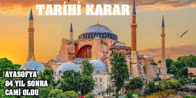 Fatih Sultan Mehmet?in İstanbul?un fethinden sonra camiye çevirdiği Ayasofya, 24 Kasım 1934 tarihli Bakanlar Kurulu kararıyla müzeye çevrilmişti. 2 Temmuz?da Ayasofya`nın statüsünün ne olacağını ilişkin Danıştay`da görüşülen duruşma gerçekleştirildi ve karar açıklandı. Kararın ardından Ayasofya Camisi`nin, yönetimi Diyanet İşleri Başkanlığı`na devredilerek ibadete açılmasına ilişkin Cumhurbaşkanı Kararı, Resmi Gazete`de yayımlandı.