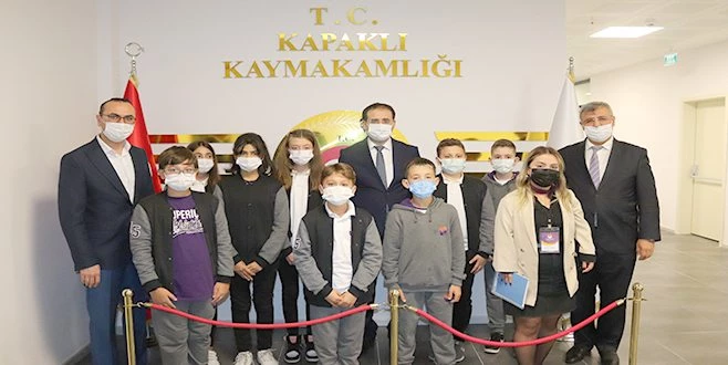 Başakşehir Okulları Genel Müdürü Mehmet Demirbaş, Eğitim Koordinatörü Fatih Çakar, Rehber Öğretmeni Betül Manat, Halkla İlişkiler Sorumlusu Fikriye Gülverin ve Ortaokul sınıf temsilcileri (5A) Batu Ünal, (5B) Utku Demir, (5C) Kaan Kaya, (6A) AselsuCeran, (6B) Efe Var, (6C) Efe Bozkurt, (7A) Safiye Gülverin, (7B) Gülce Naz Çayır geçtiğimiz günlerde görevine başlayan Kapaklı Kaymakamı Bayram Sağır?a hayırlı olsun ziyaretinde bulundu.