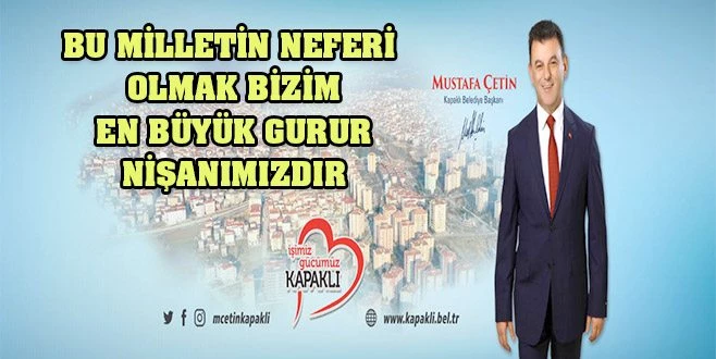 Kapaklı Belediye Başkanı Mustafa Çetin,  15 Temmuz Demokrasi ve Milli Birlik Günü dolayısıyla bir mesaj yayımladı. Mesajında, darbe girişimine gövdesini siper eden aziz milletin mensubu olmaktan büyük gurur duyduğunu belirten Başkan Çetin, ?Vatan uğruna canını veren kahraman şehitlerimizi rahmetle, gazilerimizi minnet ve şükranla anıyorum.? dedi.