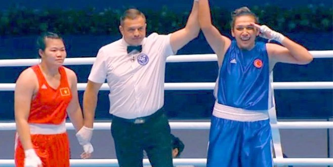 Dünya Kadınlar Boks Şampiyonası`nda 81 kiloda ringe çıkan Elif Güneri, Vietnamlı rakibini mağlup ederek adını finale yazdırdı. Güneri, maç sonrası asker selamı verdi.