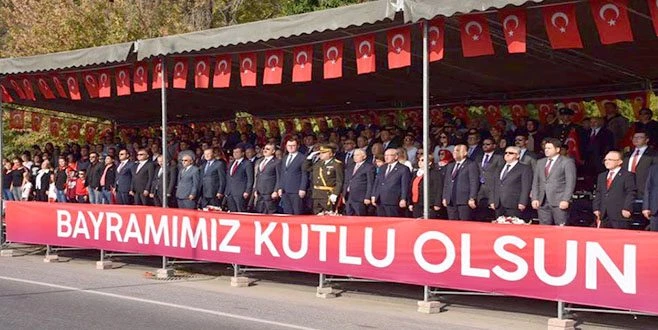Saygı duruşunda bulunulması ve İstiklal Marşı`nın okunması ile başlayan Bayram Töreni`nde Vali Aziz Yıldırım Cumhuriyet vurgulu konuşma gerçekleştirdi.  29 Ekim Cumhuriyet Bayramı kutlamaları konuşmaların ardından askeri geçit töreni, öğrenciler tarafından Mustafa Kemal Atatürk ve Cumhuriyet temalı şiirlerin okunması ve halk oyunları gösteri ile coşkulu bir şekilde devam etti. Törende ayrıca Cumhuriyet`i anlattıkları şiirler ile yarışmada dereceye girilen öğrencilere protokol üyeleri tarafından hediyeleri takdim edildi.