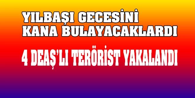 Tekirdağ İl Emniyet Müdürlüğü Terörle Mücadele Şube Müdürlüğü ekiplerince gerçekleştirilen operasyonda yılbaşı eğlenceleri öncesi eylem hazırlığında olduğu belirlenen 4 DEAŞ üyesi yakalandı.