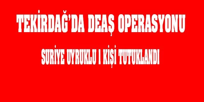 Tekirdağ İl Jandarma Komutanlığı ekipleri, yaptığı çalışmada Çerkezköy ilçesi Kızılpınar Mahallesi`nde bulunan Suriye uyruklu 2 kişinin terör örgütü DEAŞ ile bağlantısını belirledi. Jandarma evlerine düzenlediği operasyonda DEAŞ şüphelileri Suriye uyruklu, Ahmet Muhammet ve `Ebu Malik` kod adlı Ahmet El Şerif, yakalanarak gözaltına alınırken, evdeki dijital materyallere el konuldu.