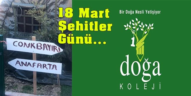 Doğa Koleji`ndeki 18 Mart anma etkinliklerinde Çanakkale güncesinden bir çok kesit öğrenciler tarafından sahnelendi. Hoşaf dağıtan öğrenciler şehitlik kurup dua etti. İşte o etkinlikten kareler...