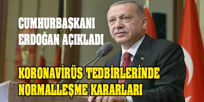 "Salgınla mücadelede eldeki mevcut bütün imkanları sonuna kadar kullanır sürecin mümkün olan en az maliyetle atlatılması için var gücümüzle mücadele etmeyi sürdüreceğiz." diyen Erdoğan yeni dönemle ilgili alınan kararları şöyle açıkladı: