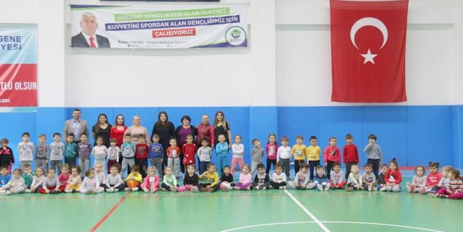 Ergene Belediyesi Beren Bebek Çocuk Akademisi`ndeki küçük öğrenciler Ergene Belediyesi Kapalı Spor Salonu`nda spor yapmanın keyfini yaşadılar.