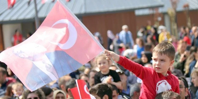 ?Bugün 23 Nisan 2019. Bundan tam 99 yıl evvel bugün bir büyük önder milli mücadeleyle başlayan, savaş meydanlarında adım adım kazıyarak, bu toprakların geleceği için mücadele eden atalarımızla beraber savaş meydanlarında zaferleri kazandıktan sonra bu ulusun birliğini, beraberliğini sağlamak, bu ulusun bağımsızlığını bundan 99 yıl evvel bugün, 23 Nisan 1920?de yeniden milletine armağan eden, 99 yıl evvel bugün 23 Nisan 1920?de ?Egemenlik kayıtsız şartsız milletindir? diyen bir büyük önderin izinde, 99 yıldır bu topraklarda barışı, kardeşliği, birliği, beraberliği sağlamış, bu milletin çocukları ile beraber olmuş, bu milletin, bu ulusun bağımsızlığı, birliği, beraberliği için mücadele etmiş bir büyük önder 99 yıl evvel Türkiye Büyük Millet Meclisi?ni kurduğunda bu milletin geleceğini çocuklara armağan etti.