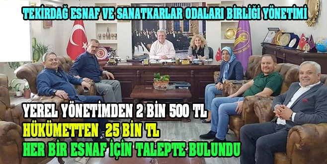 Tekirdağ Esnaf ve Sanatkarlar Odaları Birliği Başkan Yardımcısı ve Çerkezköy Esnaf ve Sanatkarlar Odası Bakanı Ali Bozdağ, sosyal medya hesabından yaptığı paylaşımda esnafın yerel ve genel yönetimlerden taleplerini sıraladı. Esnaf Tekirdağ Büyükşehir Belediyesi`nden bu zor günlerde işletmesini kapatan esnafa kişi başı 2 bin 500 TL, Hükümet`ten ise her bir esnafa 25 bin TL nakdi yardım istedi.