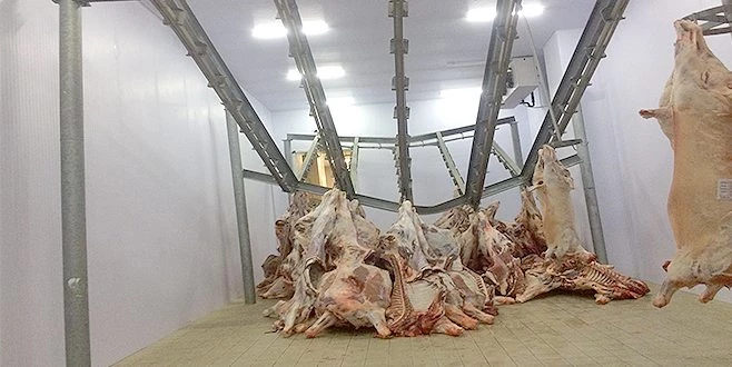 Tekirdağ Büyükşehir Belediyesi?nin Çavuşköy Mahallesi`nde faaliyet gösteren et kombina tesisinde kesilen etleri soğuk hava deposuna taşıyan monoray sisteminde meydana gelen çökme nedeniyle tesisin faaliyetlerinin durdurulduğu bildirildi.
