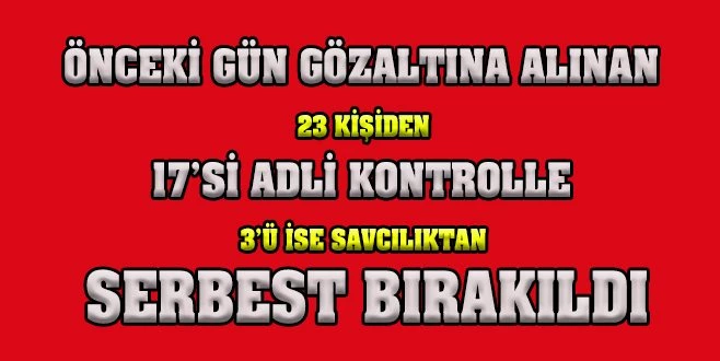 Gözaltına alınan şüpheliler arasında ihraç edilmiş vergi müfettişi ve Adalet Bakanlığı Ceza ve Tevkifevleri Genel Müdürlüğü?nde görev yapan bir infaz memurunun da bulunduğu öğrenildi. Adliyede sevk edilen 23 kişiden 17?si adli kontrolle, 3?ü ise savcılıktan serbest bırakılırken geriye kalan 3 kişi ise tutuklanarak cezaevine gönderildi.