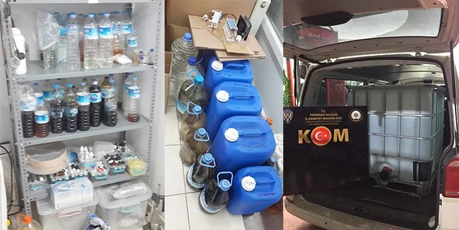Detaylı yapılan aramalarda, 12 bin 400 litre etil alkol, 80 litre kaçak içki, alkollü içki üretiminde kullanılan 5 ısı ölçer, yoğunluk ölçen 10 dansimetre, alkollü içki yapımında kullanılan çok sayıda piyasaya sürülmek üzere hazırlanmış kargo paketleri, bir kargo firmasına ait bandrol ve etiketler, bir sıvı madde aktarımında kullanılan dalgıç pompa ile çok sayıda kimyasal ve bitkisel aroma ele geçirildi.