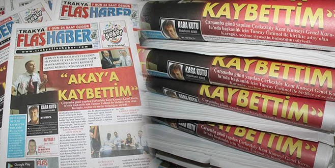 Yeni sayısı bugün çıkan Trakya Flaş Haber`de yine bomba haber bulunuyor. Haftanın manşetinde `Vahap Akay`a kaybettim` diyen Çerkezköy Kent Konseyi Genel Kurulu`nda başkanlık için aday olan Serkan Karagöz`ün sözleri yer aldı. İki gün önce genel kurul yapan Kent Konseyi`ne Tuncay Üstünol 7 oy farkla başkan seçilmişti.