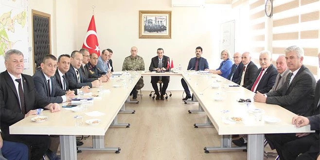 Toplantıda ilçede genel güvenlik konusunda yürütülecek hizmetler, alınacak tedbirler ve yapılacak çalışmalar görüşüldü. İlçe Kaymakamı Atilla Selami Abban`ın başkanlığında yapılan İlçe Güvenlik Kurulu Toplantısına; 3. Zırhlı Tugay Komutanı Tuğgeneral Ahmet Ömercikli, Cumhuriyet Başsavcısı Bayram Örenci, Belediye Başkan Vekili Kemal Gümüş, İlçe Jandarma Komutan Vekili Uğur Yılmaz, İlçe Emniyet Müdürü Murat Sevgi, kurum amirleri ve mahalle muhtarları katıldı.