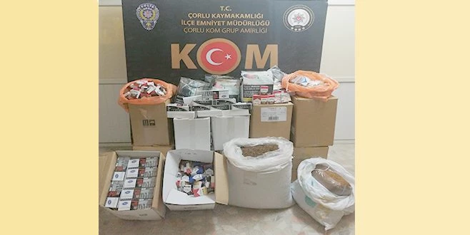Tekirdağ İl Emniyet Müdürlüğü Kaçakçılık ve Organize Suçlarla Mücadele Şube ekipleri, tütün ve makoran satışı yaptığı tespit edilen 10 farklı adreste arama yapıldı. Aramalarda, 62 bin 220 adet doldurulmuş makaron, 72 kilogram açık kıyılmış tütün, 6 bin 900 adet bandrolsüz boş makaron, 5 bin 600 adet sigara sarma kağıdı, 32 paket bandrolsüz nargile tütünü, 28 adet mükerrer TAPDK bandrolü ele geçirilerek, 5 şüpheli şahıs hakkında adli işlemlere başlatıldı.