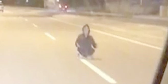 İstanbul-Çanakkale yolunda yol ortasına oturan bir kadın, yürekleri ağza getirdi.