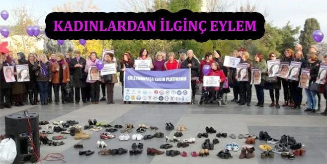 Süleymanpaşa Kadın Platformu üyeleri, `25 Kasım Kadına Yönelik Şiddete Karşı Uluslararası Mücadele ve Dayanışma Günü`nde şiddete uğrayan kadınları simgelediğini belirttikleri ayakkabıları yol ortasına dizdi.