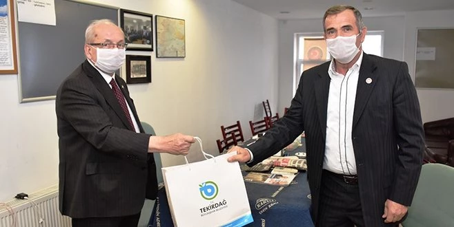 Süleymanpaşa Muhtarlar Derneğini ziyaret eden Tekirdağ Büyükşehir Belediye Başkanı Kadir Albayrak ilk hijyen paketlerini Dernek Başkanı Mahir Sadık ile Demirli Mahallesi Muhtarı Yüksel Uçan`a teslim etti.