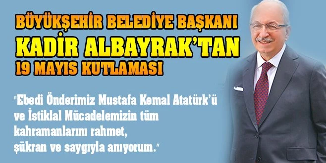 Tekirdağ Büyükşehir Belediye Başkanı Kadir Albayrak, 19 Mayıs Atatürk?ü Anma, Gençlik ve Spor Bayramı nedeniyle bir kutlama mesajı yayımladı. Başkan Kadir Albayrak, mesajında şu ifadelere yere verdi:
