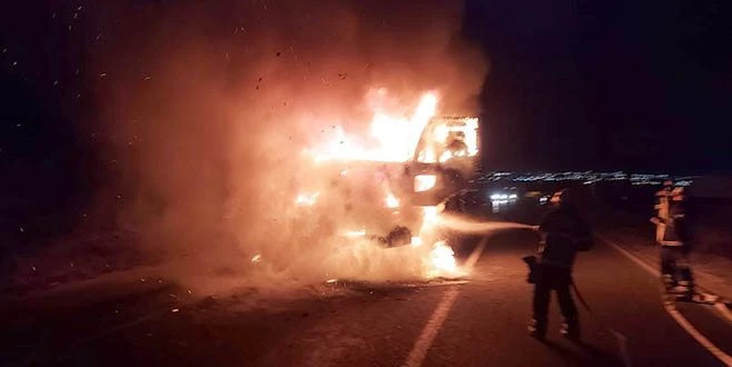 SEYİR HALİNDEKİ KAMYON ALEV TOPUNA DÖNDÜ