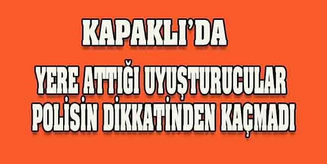 Tekirdağ?ın Kapaklı ilçesinde polisleri fark edince sakladığı uyuşturucuları yere atan şahıs, emniyet ekiplerinin dikkati sayesinde yakalandı.