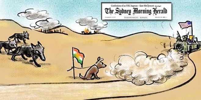 Dün Türkiye`deki bir grup vatandaş arasında dolaşan `ABD`nin YPG başta olmak üzere PKK`lı teröristleri yalnız bıraktığını anlatan karikatürün Avusturya`da yayımlanan `The sydney morning herald` gazetesinde basıldığı ortaya çıktı.