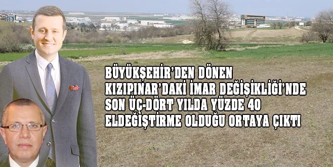 Çerkezköy Belediyesi tarafından Kızılpınar?da 63 hektar alanı kapsayan 1/1000?lik İmar?Palanı tadilatı, geçtiğimiz yıl eylül ayı meclisinde görüşülerek,?Büyükşehir?Belediye Meclisi?ne sevk edilmişti.?Tarla vasfındaki alanın, arsa vasfına çevrilmesine ilişkin imar tadilatının yapılması öncesinde binlerce dönümün el değiştirdiği ortaya çıktı.?Özellikle 2016-2017-2018 yıllarında binlerce dönüm arsanın satın alındığı görülen Tapu Kayıtları?nda halihazırda Belediye Meclis?Üyesi olan ve CHP?Başkan?Adayı Vahap?Akay?ın yeniden Meclis?Listesi?nde 3. sırada yer verdiği Nihat?Mıstık?ın da oğlu adına yer satın alındığı ortaya çıktı.?Mıstık?ın oğlu Hasan?Mıstık, söz konusu imar değişikliği yapılan alanda 14.08.2017 yılında 2 bin 300 metrekare, 14.07.2018 tarihinde ise 2 bin 350 metrekare ?tarla? satın aldığı ortaya çıktı. Özellikle 928, 929, 940 yüzlerce parsel, son üç-dört yıl içerisinde el değişti, satın alındı. Satın alanlar arasında Nihat?Mıstık?ın yönlendirmesi ile CHP?ye yakın oldukça fazla kişinin olduğu iddia ediliyor. Yine bazı, Meclis Üyeleri?nin oğulları ve yakınları tarafından binlerce dönüm satın aldığı kayıtlarda mevcut.