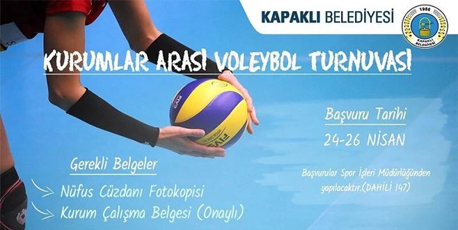 Kapaklı Belediyesi Spor İşleri Müdürlüğü tarafından `Kurumlar Arası Voleybol Turnuvası` düzenlenecek