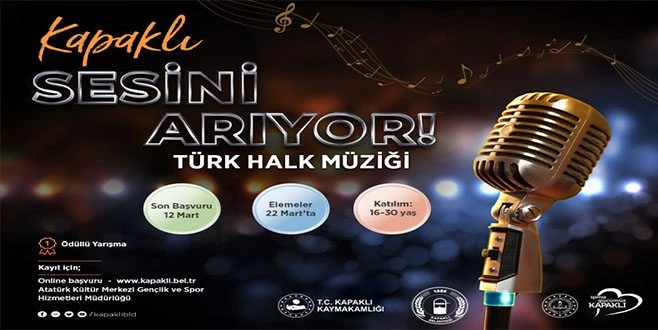 Kapaklı Belediyesi Gençlik ve Spor Hizmetleri Müdürlüğü tarafından `Kapaklı Sesini Arıyor` adlı ödüllü türkü yarışması düzenlenecek.