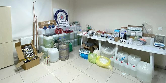 Operasyon çerçevesinde kaçak üretim yaptıkları belirlenen kimya teknikerleri, G.K ve G.K gözaltına alındı. Ele geçirilen 59 adet 50 ml şişelerde dezenfektan, 120 litre ayrıştırılmış ve seyreltilmiş içki kullanılan alkol, 2 adet hassas terazi, 100 litre gliserin, Çok sayıda sahte etiket ve hologram çok sayıda hayvansal ve bitkisel ürün ve üretiminde kullanılan şişe ve medical malzemeye de polis ekiplerince el konuldu.