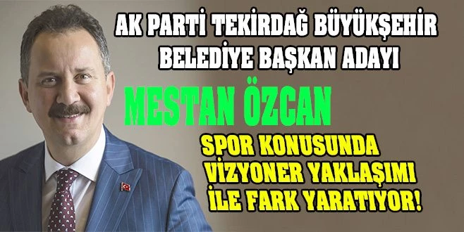 Tekirdağ?ın spor alanında hak ettiği noktada olması ve tüm branşlardaki profesyonel ve amatör sporcuların önünü açmak için her ne gerekiyorsa yapmaya hazır olduklarını belirten AK Parti Tekirdağ Büyükşehir Belediye Başkan Adayı Mestan Özcan, ?Spora ve sporcuya büyük önem veren bir belediyecilik anlayışına sahibiz. Bu anlayışla beraber geliştirdiğimiz yaklaşımların bizi tüm branşlarda başarıya götürmesini hedefliyoruz."dedi.
