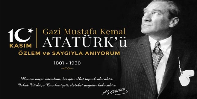 ?Askeri ve siyasi dehasıyla Türk ve dünya tarihine adını altın harflerle yazdıran, Cumhuriyetimizin kurucusu Gazi Mustafa Kemal Atatürk`ü vefatının 82. yılında özlem, minnet ve saygıyla anıyorum. Milletine duyduğu sonsuz güven ve inancıyla çıktığı zorlu yolda, milletimizi müşterek bir ideal etrafında birleştirmeyi başaran Gazi Mustafa Kemal Atatürk, İstiklal Mücadelemizi Cumhuriyetimizin kuruluşuyla taçlandırmıştır. Milletimiz, Gazi Mustafa Kemal Atatürk`ün `en büyük eserim` olarak adlandırdığı Cumhuriyetimizi, kardeşlik, birlik ve bütünlük ruhunu koruyarak tek millet, tek bayrak, tek vatan ve tek devlet ilkeleri kapsamında azim ve kararlılıkla sonsuza kadar koruyacaktır.
