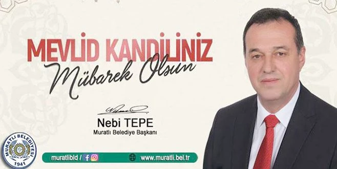 Muratlı Belediye Başkanı Nebi Tepe, Mevlid Kandili dolayısıyla bir mesaj yayınladı. Başkan Tepe, mesajında şu ifadelere yer verdi: Peygamber efendimizin doğduğu gece olan Mevlid Kandil?ine ulaşmış olmanın bir kez daha mutluluğunu yaşıyoruz.