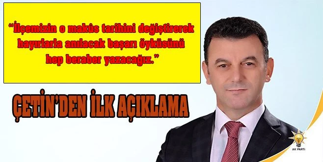 Şimdi, `Tevazu, Samimiyet, Gayret ile Önce Millet, Önce Memleket` diyerek, birlik beraberlik içinde el elle, omuz omuza aşk ile çalışmaya devam edeceğiz. İlçemize ve halkımıza hak ettiği hizmeti getirmekten başka bir derdi olmayan ekibimiz ile ilçemizin O makûs tarihini değiştirerek hayırlarla anılacak başarı öyküsünü hep beraber yazacağız.
