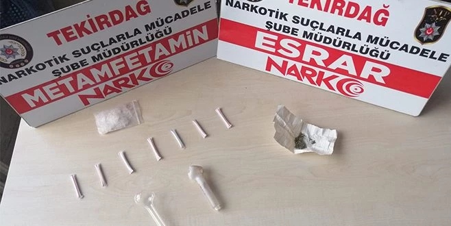 Süleymanpaşa ilçesinde de şüpheli bir araçta yapılan aramada, araçta bulunan E.E. ve O.S.E.`den 12.3 gram metamfetamin, uyuşturucu içme aparatı, 1 gram kubar esrar ele geçirildi. Her iki şahıs gözaltına alınarak soruşturma işlemlerine başlandı.